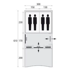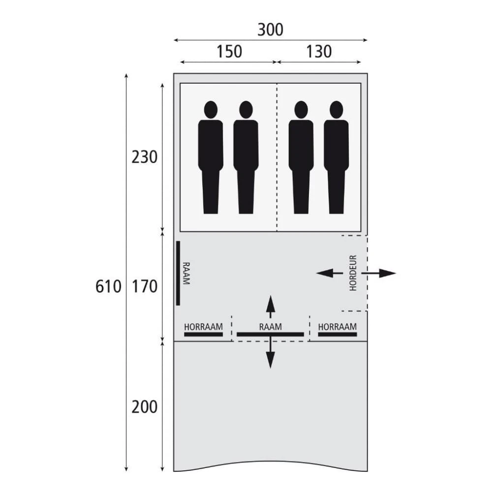 Ook deze tent van Bardani is voorzien van het Variosysteem. Hiermee kan je de gordijnen traploos verduisteren en zijn zij met de ritsen perfect af te sluiten. Ondanks dat deze tent wat compacter is heeft hij twee slaapcabines. Deze zijn gescheiden met een scheidingswand die ook volledig weg te ritsen is.
