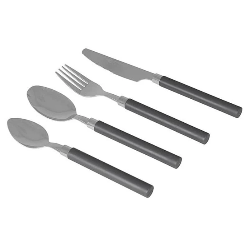 Deze 24-delige bestekset van Bo-Camp wordt geleverd in een handig mandje. De set bevat voor 6 personen een mes, vork, lepel en theelepel. De combinatie van RVS en kunststof geeft dit bestek een lange levensduur en zorgt er voor dat deze vaatwasmachinebestendig is.