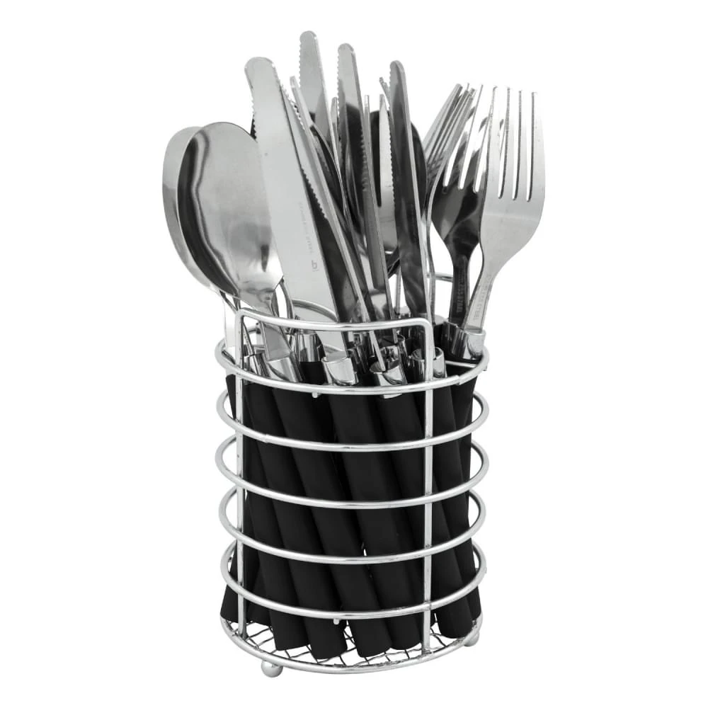 Deze 24-delige bestekset van Bo-Camp wordt geleverd in een handig mandje. De set bevat voor 6 personen een mes, vork, lepel en theelepel. De combinatie van RVS en kunststof geeft dit bestek een lange levensduur en zorgt er voor dat deze vaatwasmachinebestendig is.