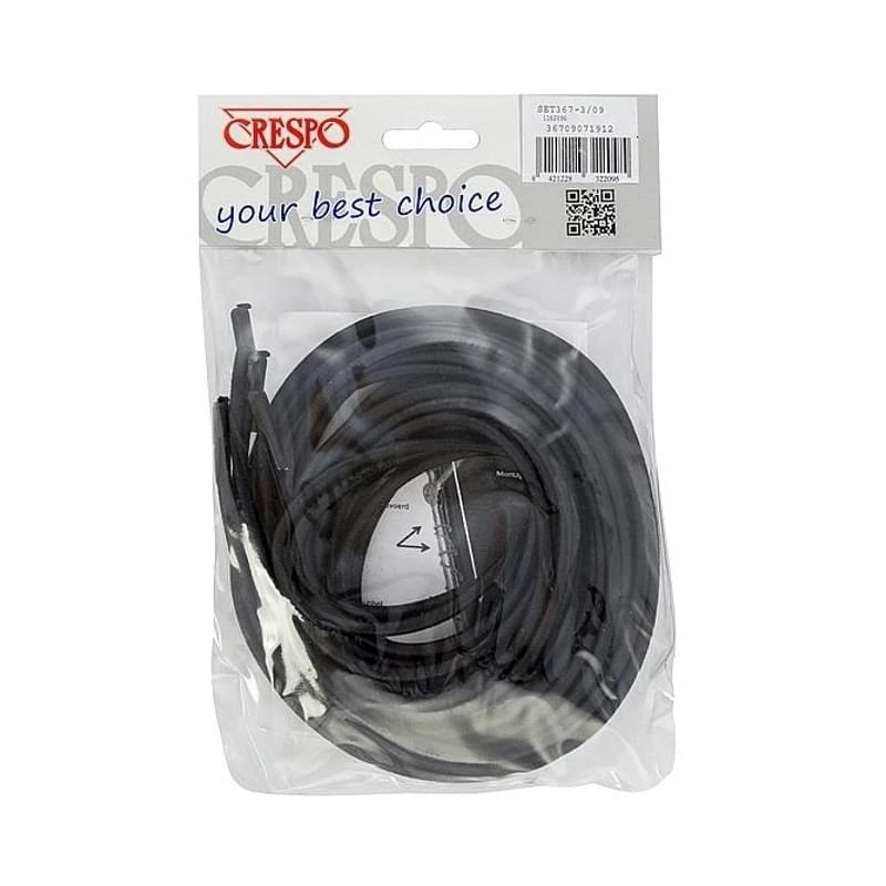Deze set bevat 4 lange zwarte elastieken voor het vervangen van het elastiek van je Crespo ligbed.