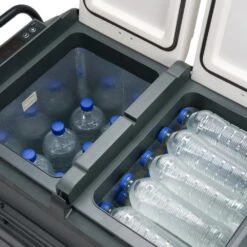 Het bijzondere aan de Fred koelboxen is dat ze niet alleen kunnen koelen, maar dat ze ook kunnen vriezen! Zo kan je zelf bepalen hoe koud je de temperatuur in de koelbox wilt hebben. Je kiest voor koelen wanneer je alleen je eten en drinken koel wilt houden. Heb je ijsjes meegenomen of andere diepvriesproducten dan kies je op het display voor vriezen. De Big Fred heeft twee compartimenten. Het is mogelijk om allebei te laten koelen of vriezen, of je laat de ene koelen en het andere compartiment vriezen. Zo simpel kan het zijn!