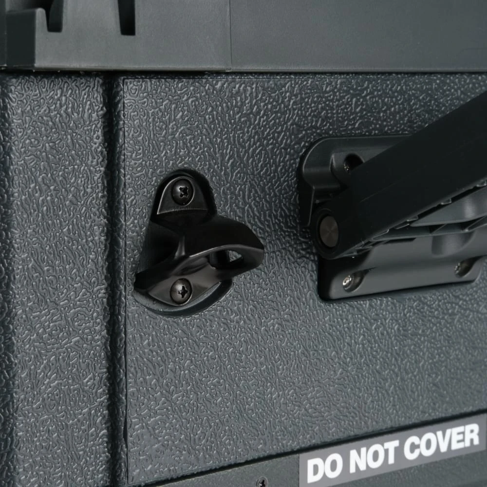 Ook in het donker kan je dankzij de verlichting aan de binnenkant van Fred zien wat je uit de koelbox pakt. Bovenop, bij het display vind je nog een USB-poort waar je dan weer je telefoon of tablet op kunt laden. Big Fred is een grote jongen en daarom heeft hij twee wielen en een beugel die je uit kunt trekken, zo is hij ook makkelijk te verplaatsen. Aan de zijkant van de koelbox vind je een flessenopener. Zet het handvat van de koelbox uit en je kan in het gat de parasol klemmen. Kan jij in de schaduw genieten van een heerlijk verfrissend drankje. Fred zorgt voor je eten en drinken en is heel rustig, de perfecte reisgenoot