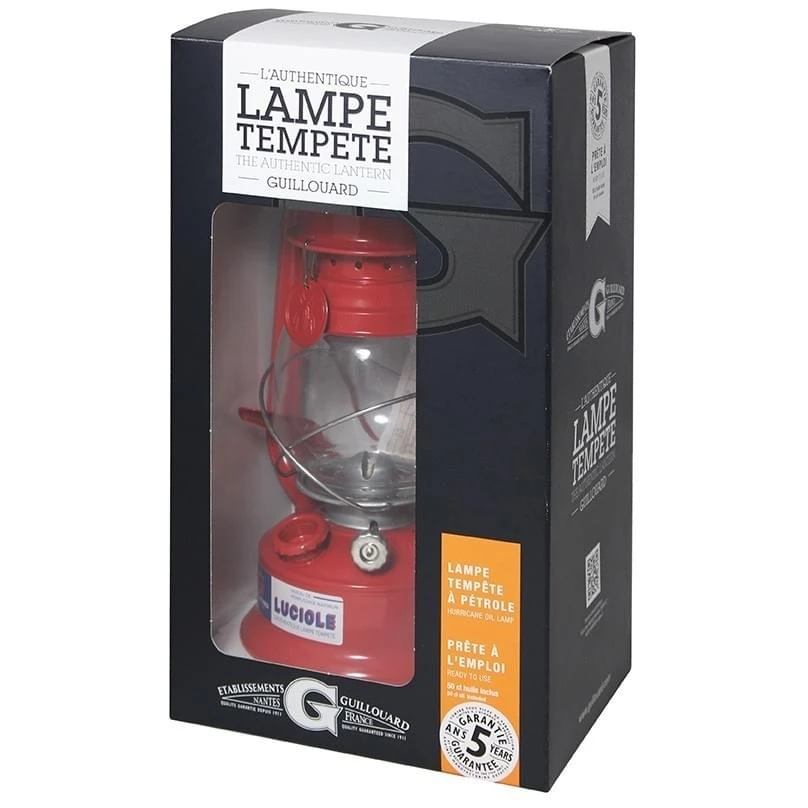 Al sinds 1927 worden deze olielampen van Guillouard op bijna ambachtelijke wijze gemaakt. Door de speciale luchtcirculatie brand de Luciole olielamp rustig en produceert hij geen roet. De tank heeft een inhoud van 0,5 liter en hier kan je de lamp 24 uur op laten branden. Guillouard geeft 5 jaar garantie op de lantaarns. Wanneer de lont aan vervanging toe is zijn platte lonten van 12 mm hiervoor geschikt.