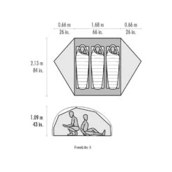 In deze FreeLite 3 heb je voldoende ruimte om met 3-personen te slapen mits je allemaal een Exped M of een Therm a Rest R slaapmat gebruikt. Je kan er ook voor kiezen om deze tent met 2-personen te gebruiken. Je hebt dan een zee van slaapruimte en ook nog extra om je bagage ook daadwerkelijk in de binnentent te stallen.