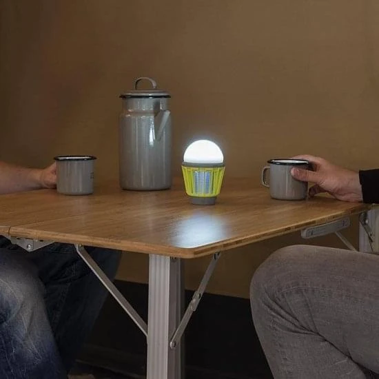 Dit handige campinglampje van ProPlus geeft niet alleen licht, maar dood ook muggen. Boven het lampje is namelijk een insectenlamp aangebracht dat insecten lokt en deze doodt. Het lampje met verschillende lichtstanden en de insectenlamp zijn afzonderlijk aan en uit te zetten.