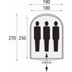 De tent biedt slaapruimte aan maximaal drie personen. Aan de voorzijde van de tent is een hor deur aanwezig, die zorgt voorvoldoende ventilatie en houdt eveneens ongewenste insecten buiten de deur.